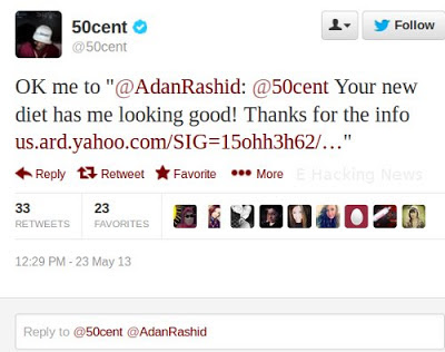 El investigador de seguridad Janne Ahlberg descubrió que la cuenta de Twitter del rapero 50Cent, quien tiene 7.6 millones de seguidores, también fue víctima de esta campaña de spam.